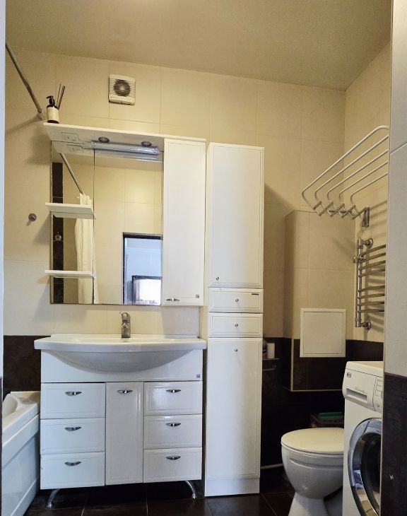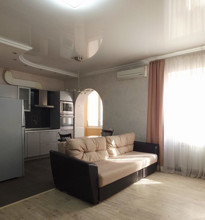 Квартира с евроремонтом, полностью готова к проживанию. В гостиной и на кухне есть вся необходимая мебель. В квартире установлена современная техника: кондиционер, холодильник, варочная панель, духовой шкаф и стиральная машина.