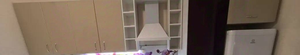 Практичный кухонный гарнитур, диван.