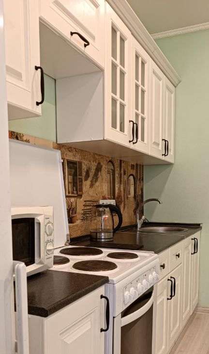 Уютная светлая квартира в тихом районе, с удобным въездом и выездом в город.