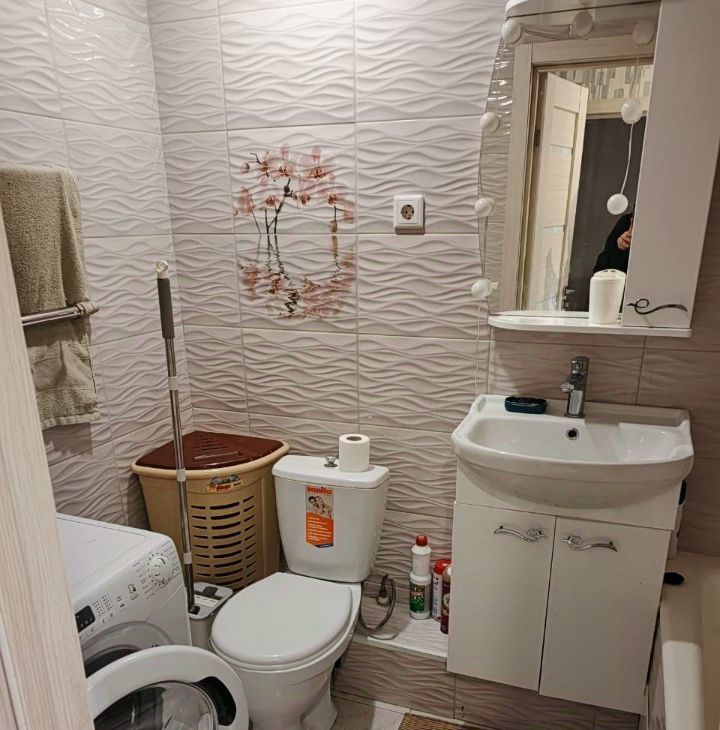 Санузел совмещен, оборудован стиральной машиной. Балкон застеклен, с его помощью можно наслаждаться видом на зеленый двор.