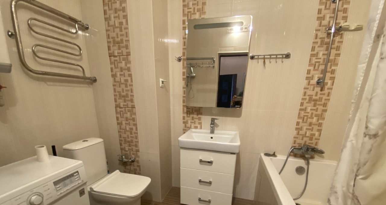Квартира общей площадью 50 кв.м. расположена на 16-ом этаже 18-этажного монолитно-кирпичного дома 2013 года постройки. Хороший ремонт, застекленная лоджия, теплые полы на лоджии и в совмещенном санузле.
