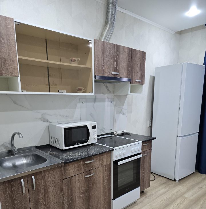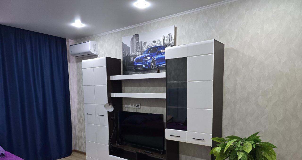 В квартире выполнен косметический ремонт, она полностью готова к проживанию. В комнате и на кухне есть вся необходимая мебель. К вашим услугам кондиционер, холодильник, телевизор, стиральная машина и микроволновка. Санузел совмещенный, оборудован ванной. Также имеется лоджия, где можно устроить зону отдыха.