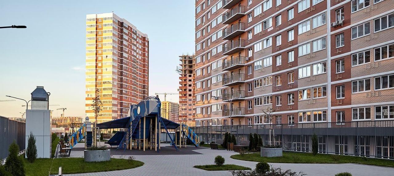 Современные дворы с детскими площадками и зонами отдыха.