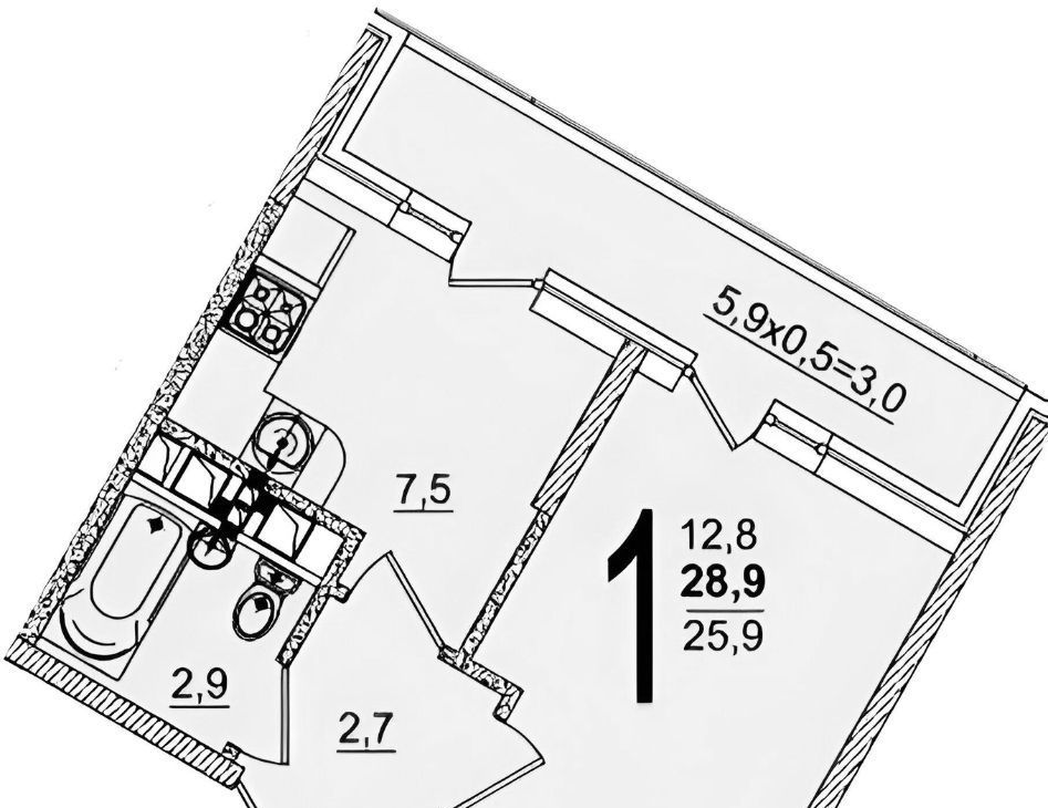1-к кв. Краснодарский край, Краснодар ул. Западный обход, 45к1 (30.0 м²)