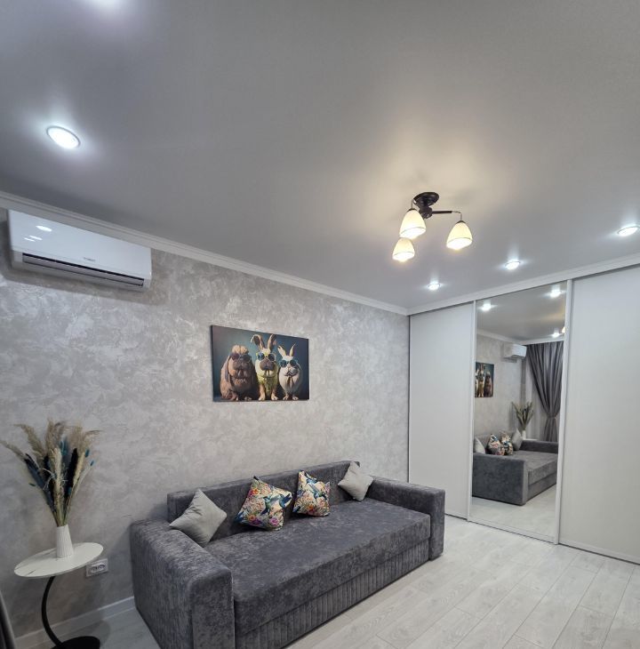 В квартире выполнен дизайнерский ремонт, который сочетает стиль и функциональность. Просторная комната и кухня полностью меблированы, поэтому вы сможете сразу заселиться без дополнительных хлопот. Совмещённый санузел оборудован современной сантехникой, а наличие ванны позволит расслабиться после долгого дня. Окна выходят на улицу, обеспечивая хорошую естественную освещённость. Также в квартире есть балкон, где можно наслаждаться утренним кофе.