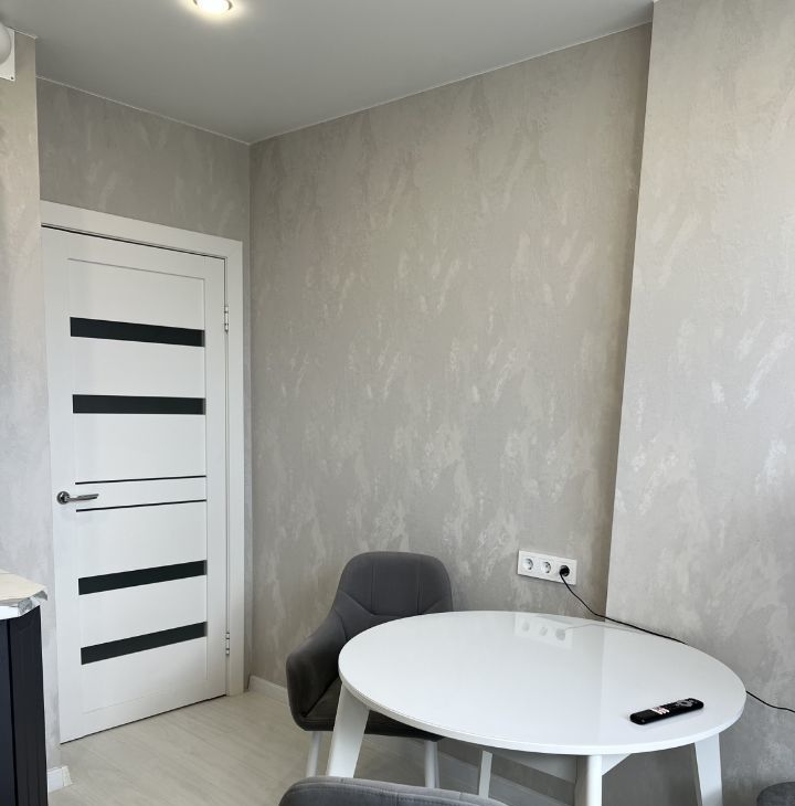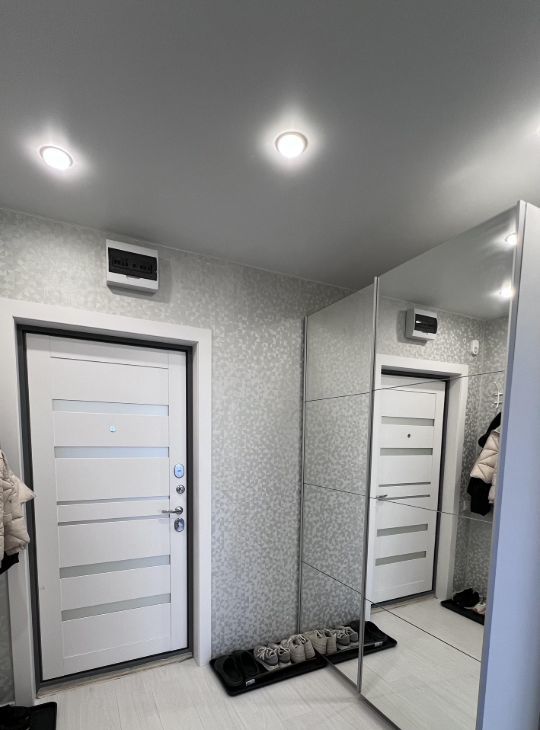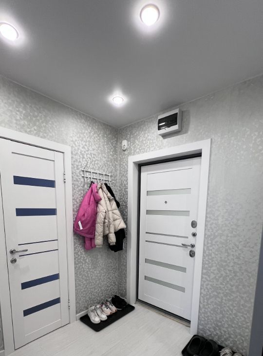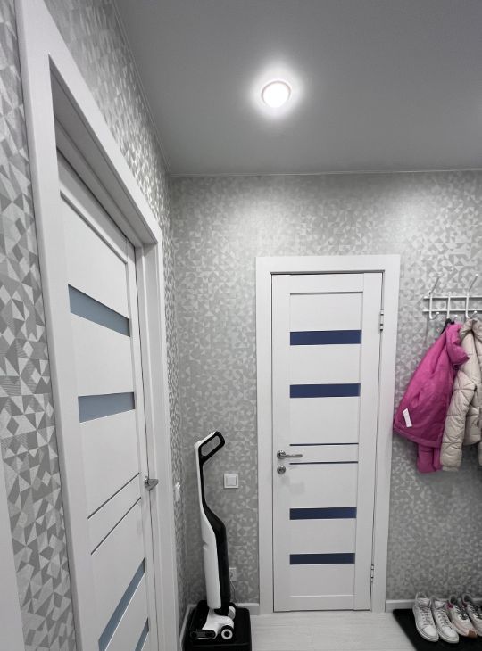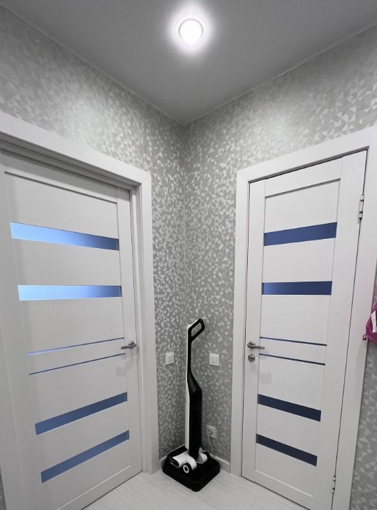 Ремонт в квартире выполнен в светлых тонах , что визуально расширяет пространство. Входная и межкомнатные двери сделаны в одном стиле