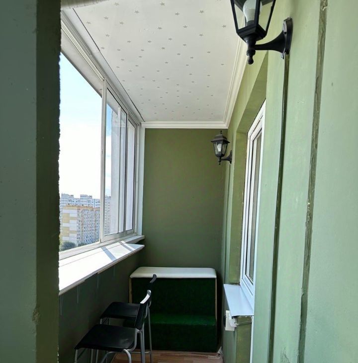 • Балкон: ленточный балкон с потрясающим видом на новый парк и Ейское шоссе — идеальное место для отдыха и утреннего кофе.