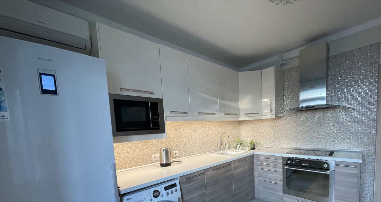 Квартира с евроремонтом, а значит, вам не придётся думать о косметическом обновлении. Вся необходимая мебель уже есть как на кухне, так и в комнате. Из техники в вашем распоряжении кондиционер, холодильник, посудомоечная и стиральная машины, что позволяет не беспокоиться о бытовых мелочах. Ванная комната оборудована современной ванной. Окна выходят на улицу, а на лоджии можно насладиться свежим воздухом.