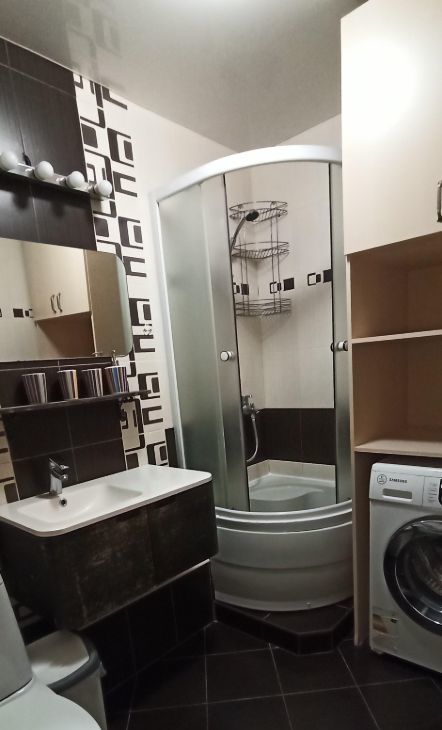 Квартира с хорошим ремонтом. Есть большой холодильник (Ноу Фрост), электрическая печь с духовым шкафом, фильтр для воды, стиральная машина, душевая кабина, накопительный водонагреватель, два телевизора ( на кухне и в комнате), В комнате раскладной двуспальный диван с ортопедическим матрасом, встроенный шкаф на всю стену ( больше 3х метров), шкаф в прихожей. Балкон утеплн, тплый пол (без животных; курение запрещено, для этого есть общий балкон), раскладная сушилка для белья. На кухне раскладной односпальный диван, раскладной стол, три стула со спинками. Соседи тихие. Предоставляю договор, электронные чеки об оплате. Минимальный срок проживания-6 месяцев. Залог в размере месячной оплаты, возвращается после выезда при проживании 6 месяцев и более. В среднем коммунальные платежи выходят около 4000. Рядом с домом есть всё необходимое: два продуктовых супермаркета, аптека, хозяйственный, строительный, овощной, мясной магазины, суши, шашлычная, круглосуточный магазин, пивной, парикмахерская, конечная остановка 15, 25 троллейбусов, через дорогу фитнес- клуб Физкультурник, поликлиника, школа...