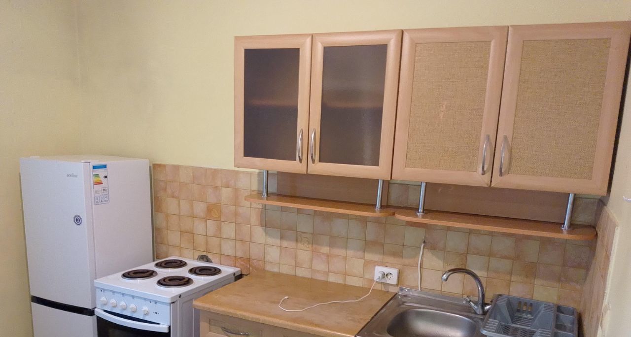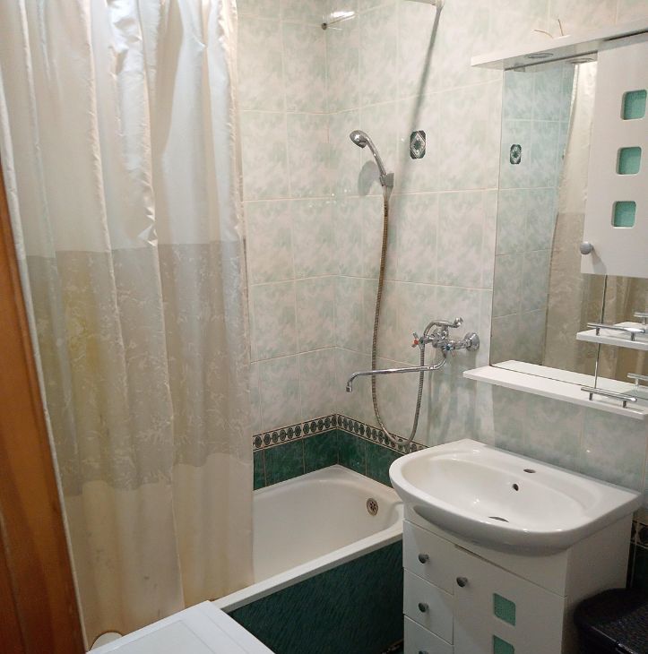 Квартира полностью укомплектована необходимой техникой: установлены кондиционер, холодильник и стиральная машина. В кухне и комнате есть мебель, что позволяет сразу заехать и жить. Ванная комната оборудована ванной, санузел совмещённый.
