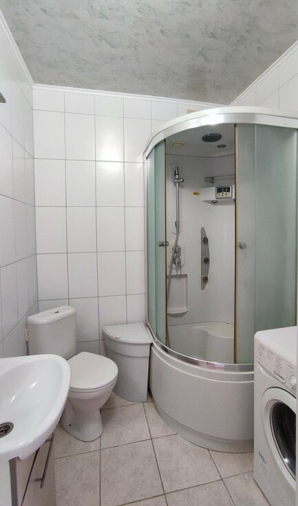 В квартире есть всё необходимое для проживания ( холодильник,стиральная машина ,микроволновка,кондиционер,два дивана,стол,стулья)