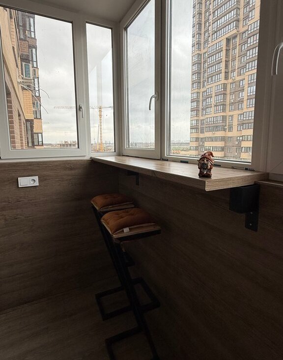 ☕ Зона отдыха: балкон с уютным диваном и барными табуретами — для утреннего кофе и вечерних посиделок.