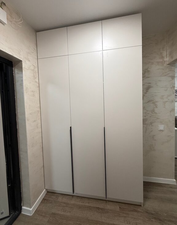 Просторный коридор: вместительный шкаф для хранения вещей, зеркало в полный рост, мягкая обувница и удобная вешалка для одежды — всё для комфорта с порога.