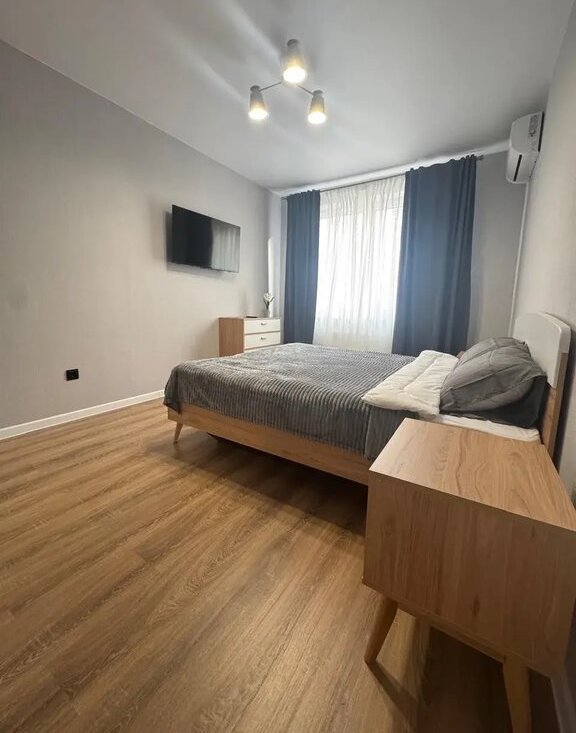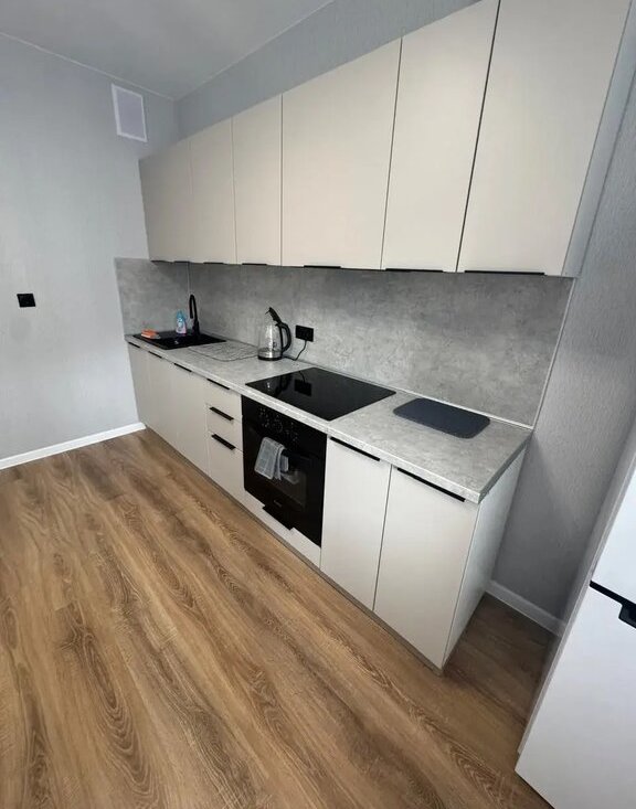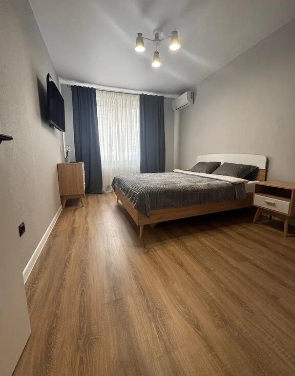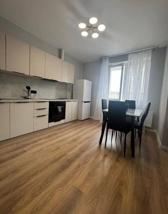 Сдается 1-комнатная квартира площадью 43 кв.м. на длительный срок. С хорошим свежим ремонтом на 4 этаже в 19-этажном доме. В квартире ни кто не жил, все мебель и бытовая техника новая. Из техники и мебели есть: