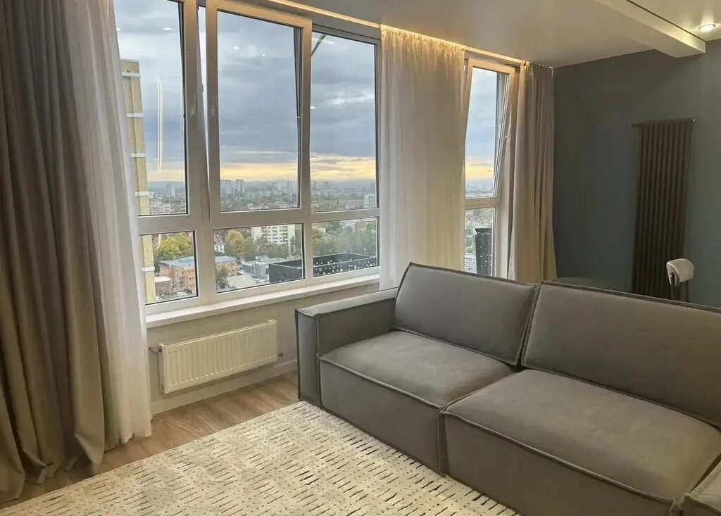 ЖК «ЭЛЕГАНТ». Дом бизнес-класса. Продается уютная квартира с дизайнерским ремонтом на 20 этаже монолитно-кирпичного дома 2022 года постройки. Кухня оборудована современной техникой, включая холодильник. Из окон открывается потрясающий вид на городскую панораму.