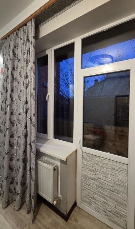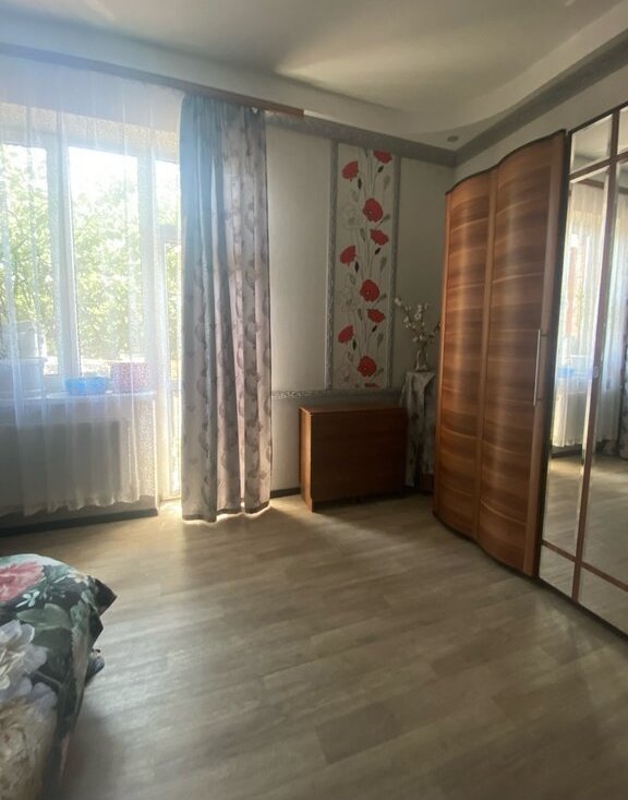 Высокие потолки 2.8 метра и окна, выходящие во двор с деревьями.