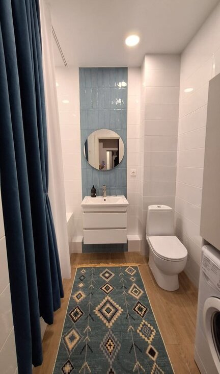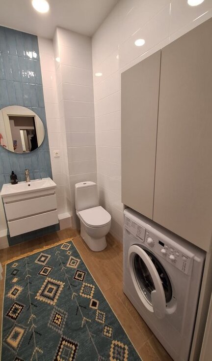 Ванная: Стиральная машина, утюг, гладильная доска. «Тёплая стена» для комфорта.