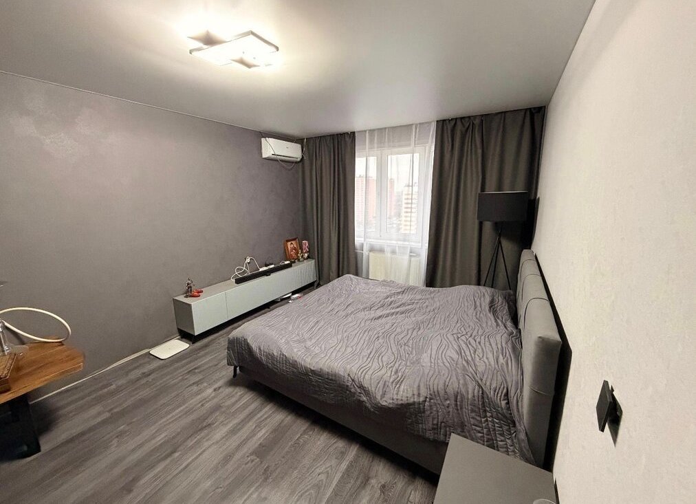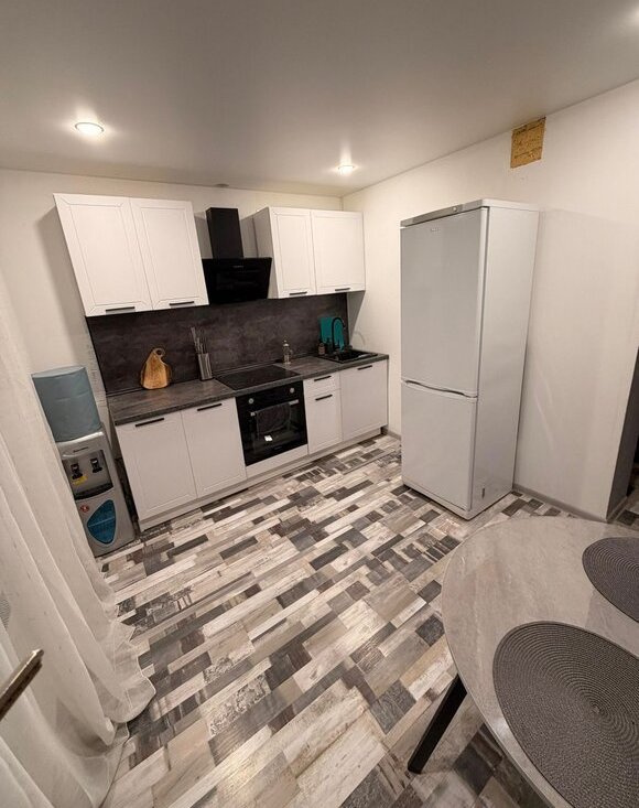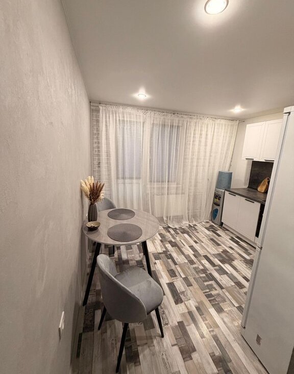 Продам 1-к квартиру с современным евро-ремонтом . Просторная комната оформлена в светлых тонах , что создает ощущение простора и комфорта. В кухне установлена стильная мебель и современная техника, включая холодильник и варочную панель. Санузел совмещенный, без ремонта оборудован всем необходимым.