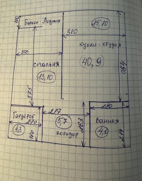 Площадь с балконом 43.8