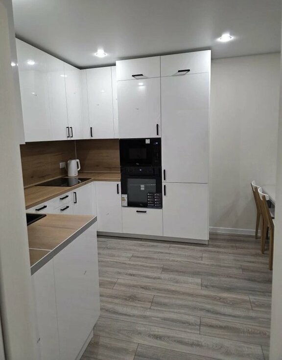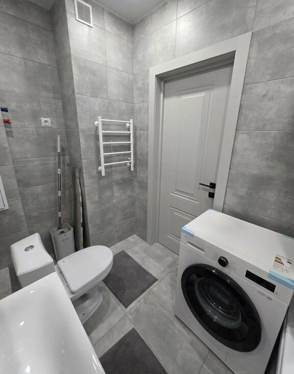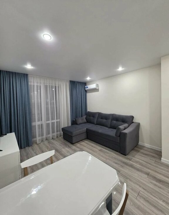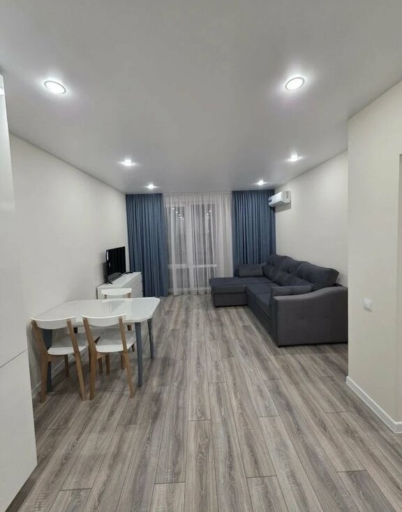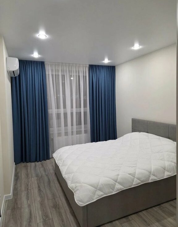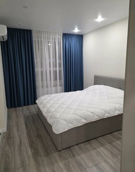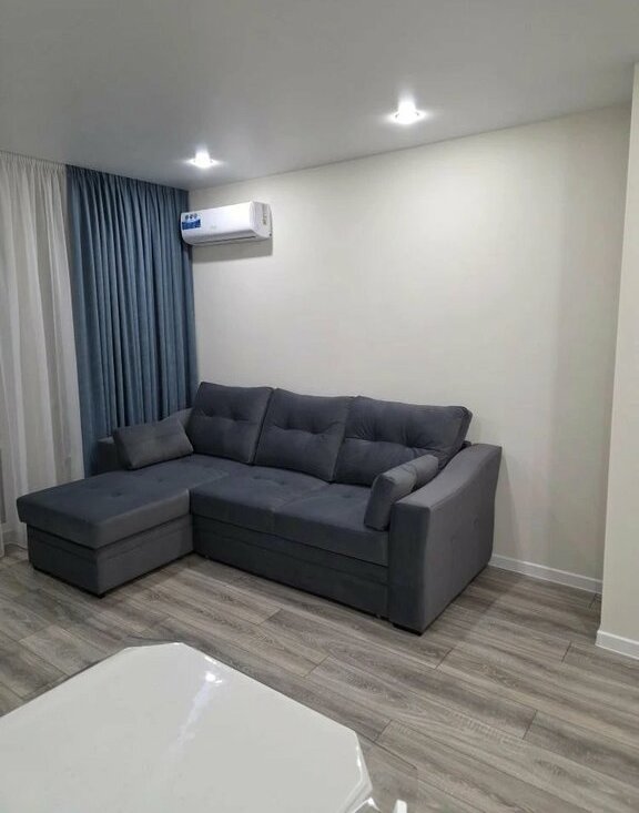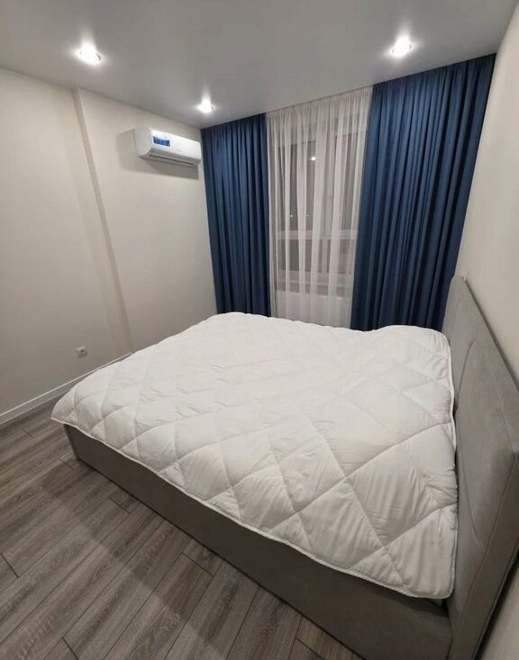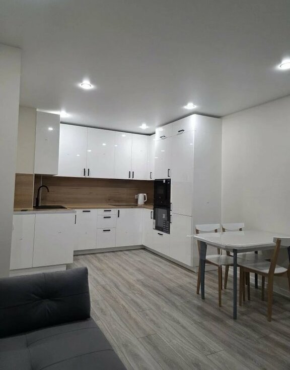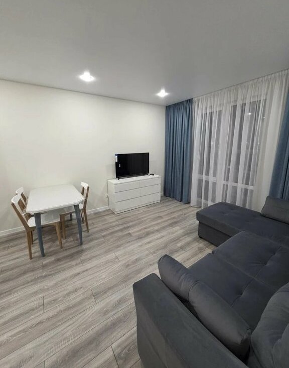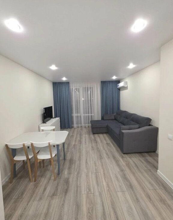 В квартире выполнен свежий евро ремонт. Просторная кухня оборудована всем необходимым: встроенные варочная панель, микроволновая печь, духовой шкаф, вытяжка, холодильник. Стиральная машина, посуда. В гостиной установлен кондиционер и телевизор. Из мебели — вместительные шкафы и удобный большой диван.