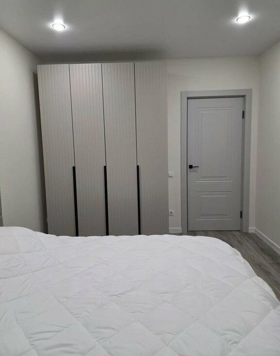 Спальня полностью оборудована. Имеется двуспальная кровать с подъемным механизмом и постельными принадлежностями, кондиционер,шкаф, сушилка для белья, утюг, пылесос, гладильная доска, фен.