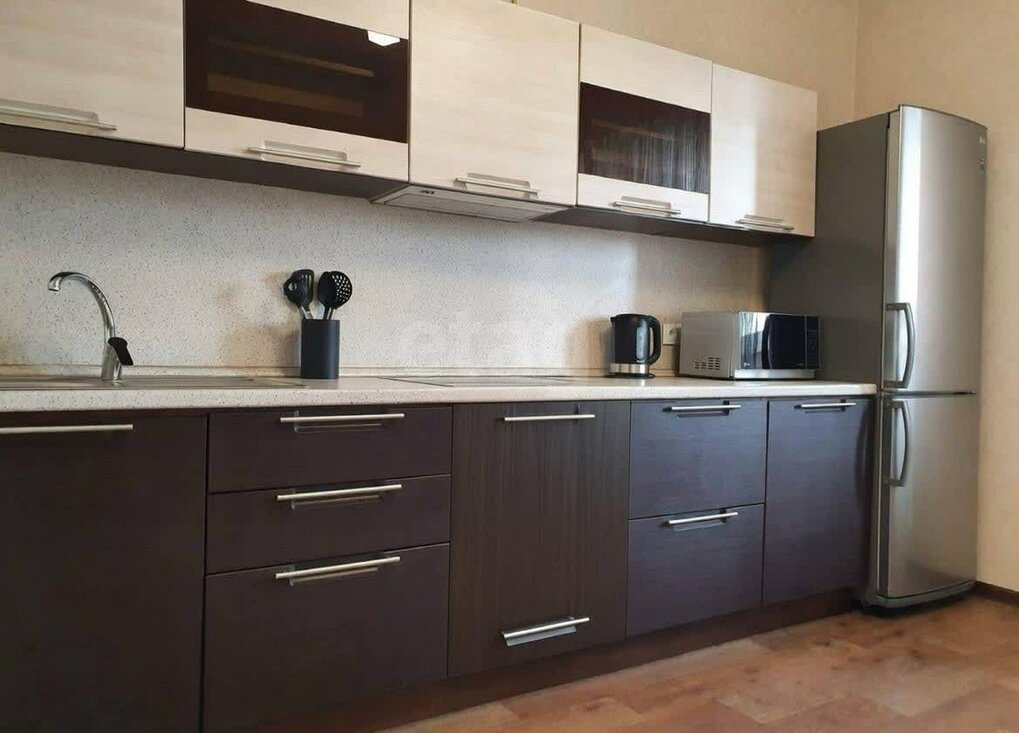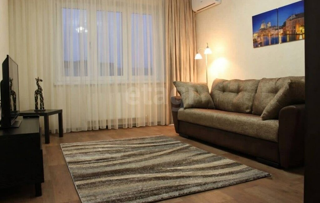 Квартира новая в современном стиле, со всеми удобствами, отличный ремонт, есть все, стол, стулья, кухонный гарнитур, шкафы-купе современная мягкая мебель: большой удобный двуспальный диван-кровать с ортопедическим спальным местом, стиральная машинка и холодильник, сплит, LCD-телевизор, в общем все необходимое для комфортного проживания. 5 мин до трамвайной остановки, 10- до автобусной.