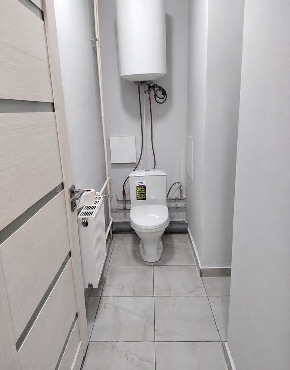 Установлена новая входная дверь. Санузел раздельный. В ванной — стиральная машина. В туалете установлен бойлер, что удобно при отключении горячей воды.