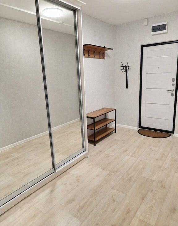 Квартира аккуратная, в светлых тонах, с хорошим ремонтом. Просторная кухня, светлая комната, удобная прихожая со шкафом.