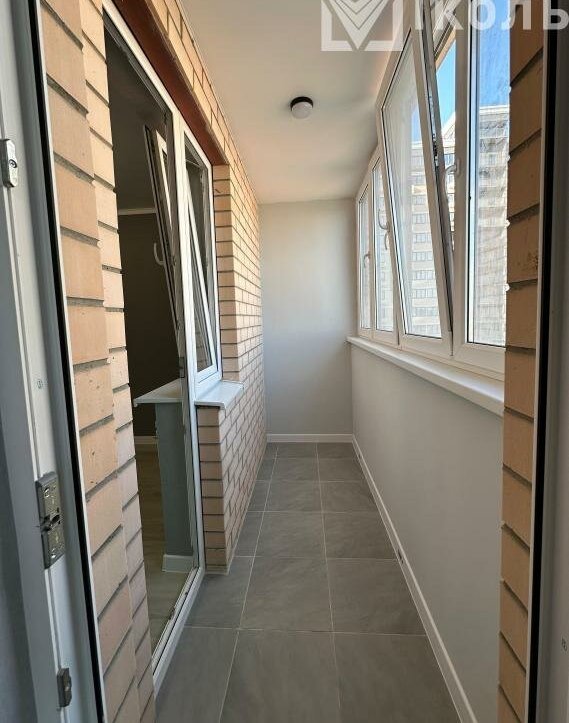 -Балкон застеклен, два входа на балкон с комнаты и гостинной.