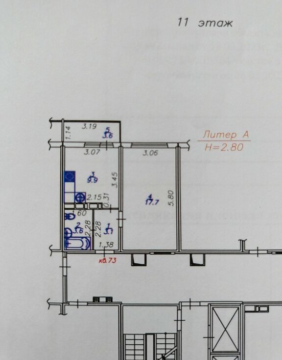 Балкон 3.6 м из кухни застеклён.