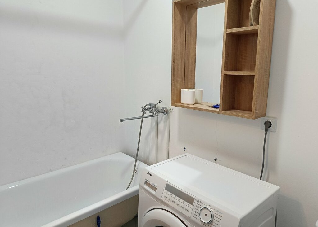 В квартире остаётся кухонный гарнитур, диван, шкаф-купе, сплит система, стиральная машина и холодильник.
