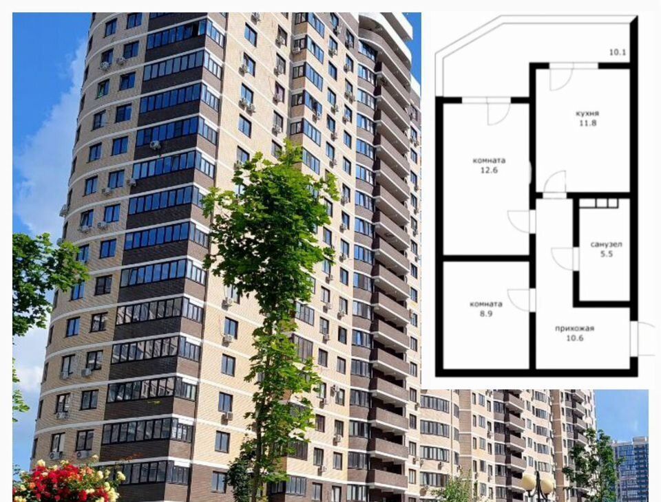 1-к кв. Краснодарский край, Краснодар ул. Имени Героя Советского Союза Николая Воробьева, 11 (36.0 м²)