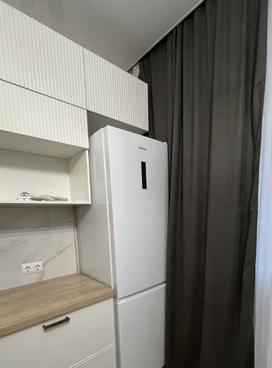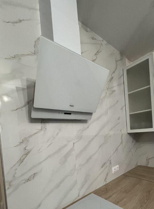 * Кухня: кухонный гарнитур, духовка и варочная поверхность Gorenje, вытяжка Haier, холодильник Hisense, стол и стулья