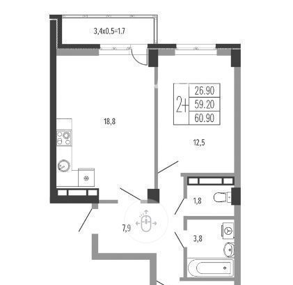 2-к кв. Краснодарский край, Краснодар пос. Знаменский, ул. Природная, 10Бк4 (61.1 м²)