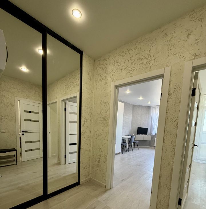 Планировка: евродвушка (изолированная спальня + просторная кухня-гостиная).
