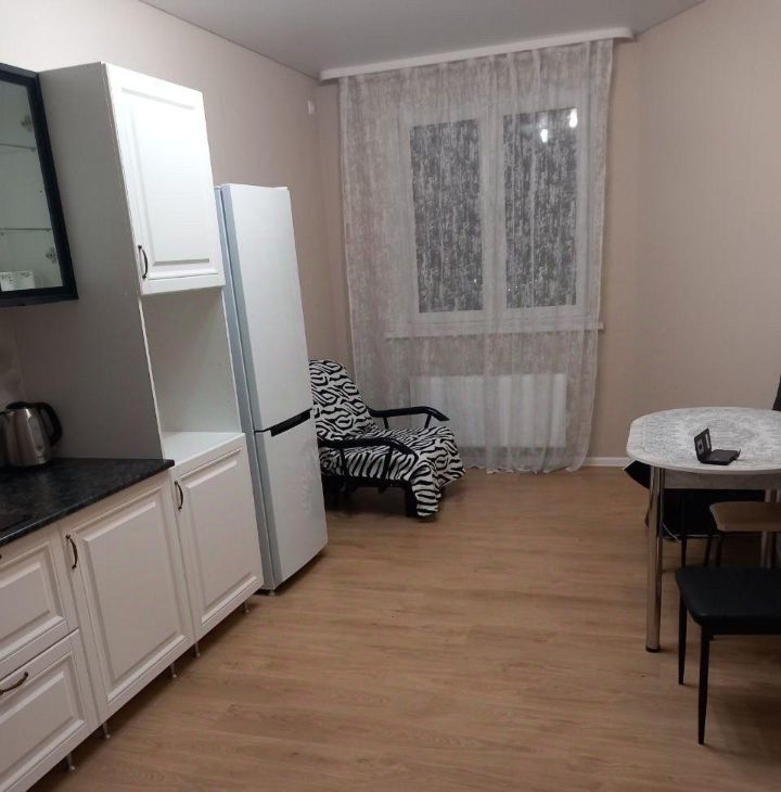 В квартире сделан косметический ремонт. Вся необходимая мебель уже есть: кухня полностью оборудована, в комнатах установлена мебель. Из техники доступны холодильник и стиральная машина. Ванная комната оборудована ванной. Изюминка квартиры — лоджия, где можно приятно провести время с чашкой кофе.