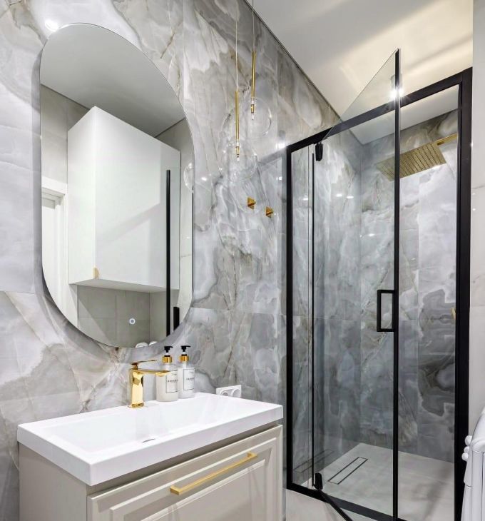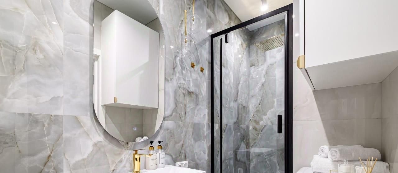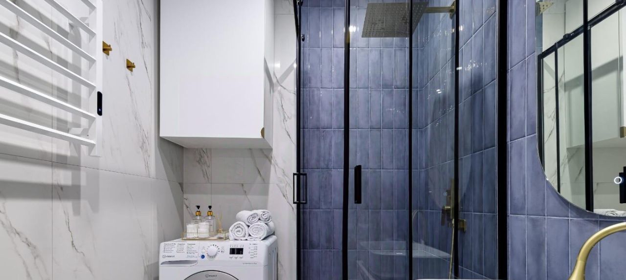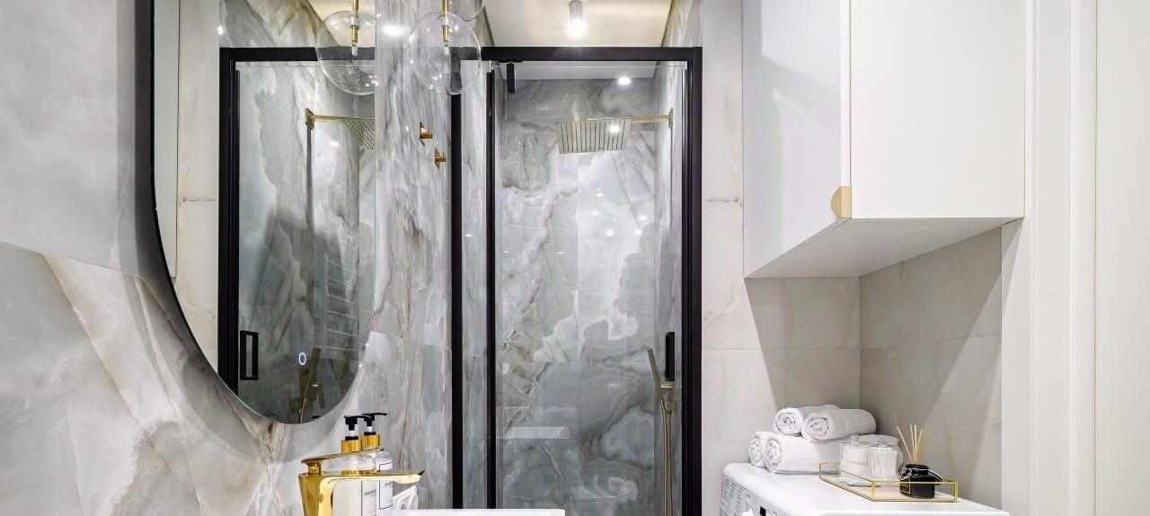 Санузелы совмещенные, выполнены в стильном дизайне с качественной сантехникой и стиральной машиной. В прихожей предусмотрены удобные шкафы для хранения вещей.