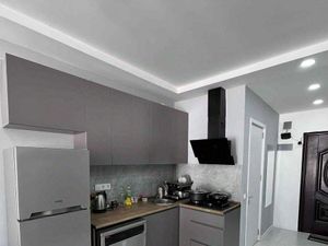 Две раздельные комнаты, гостиная и спальная и отдельная кухня с лоджий. В гостиной диван, в спальне новая кровать и гардеробный шкаф. На кухне, кухонный гарнитур, холодильник, стиральная машина и вся необходимая посуда.
