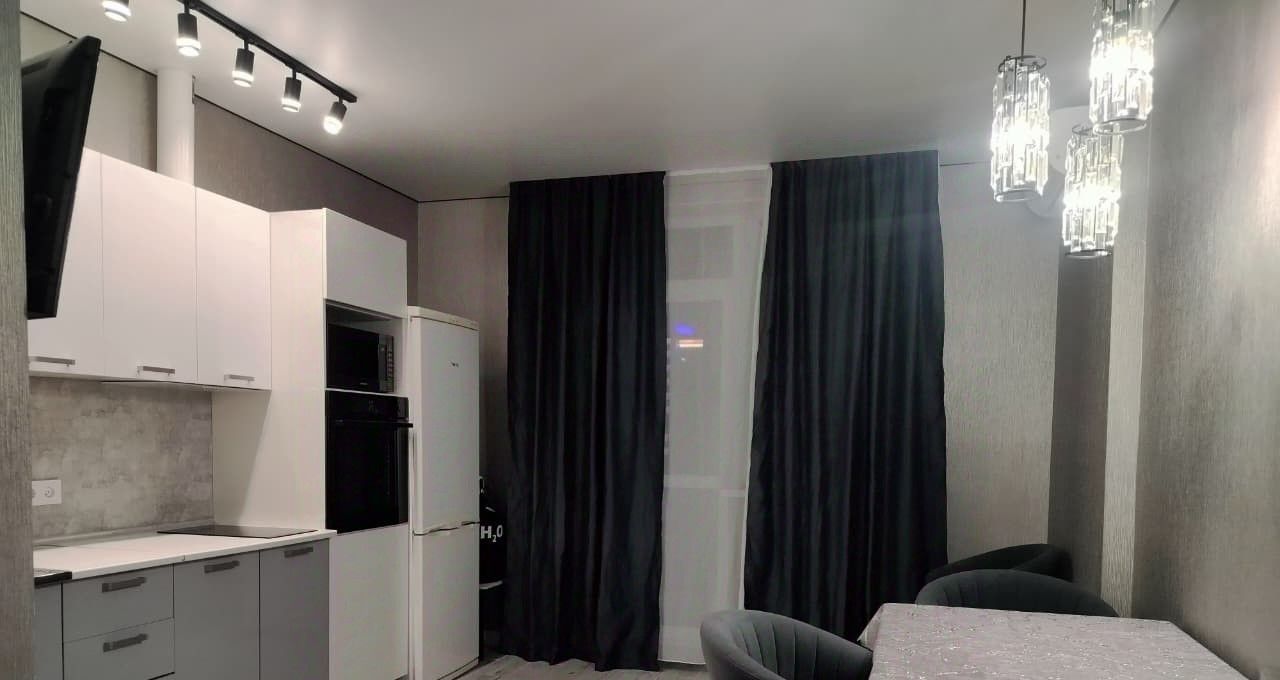 В квартире сделан евроремонт с вниманием к деталям. Просторная кухня оснащена всей необходимой мебелью и техникой: здесь есть холодильник, кондиционер и стиральная машина. В комнатах также имеется необходимая мебель для комфортного проживания. В ванной комнате установлена душевая кабина. Окна выходят во двор, поэтому в квартире тихо и спокойно.