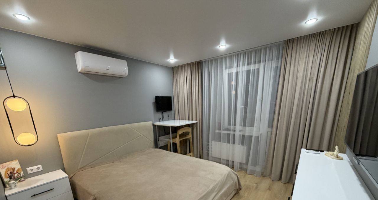 В квартире современный евроремонт, ремонт делался год назад. Просторная кухня оснащена всей необходимой техникой и современной мебелью, что позволяет сразу начать использовать ее по максимуму.В квартире один совмещенный санузел с новой сантехникой. Также есть лоджия, где можно наслаждаться видом на город.