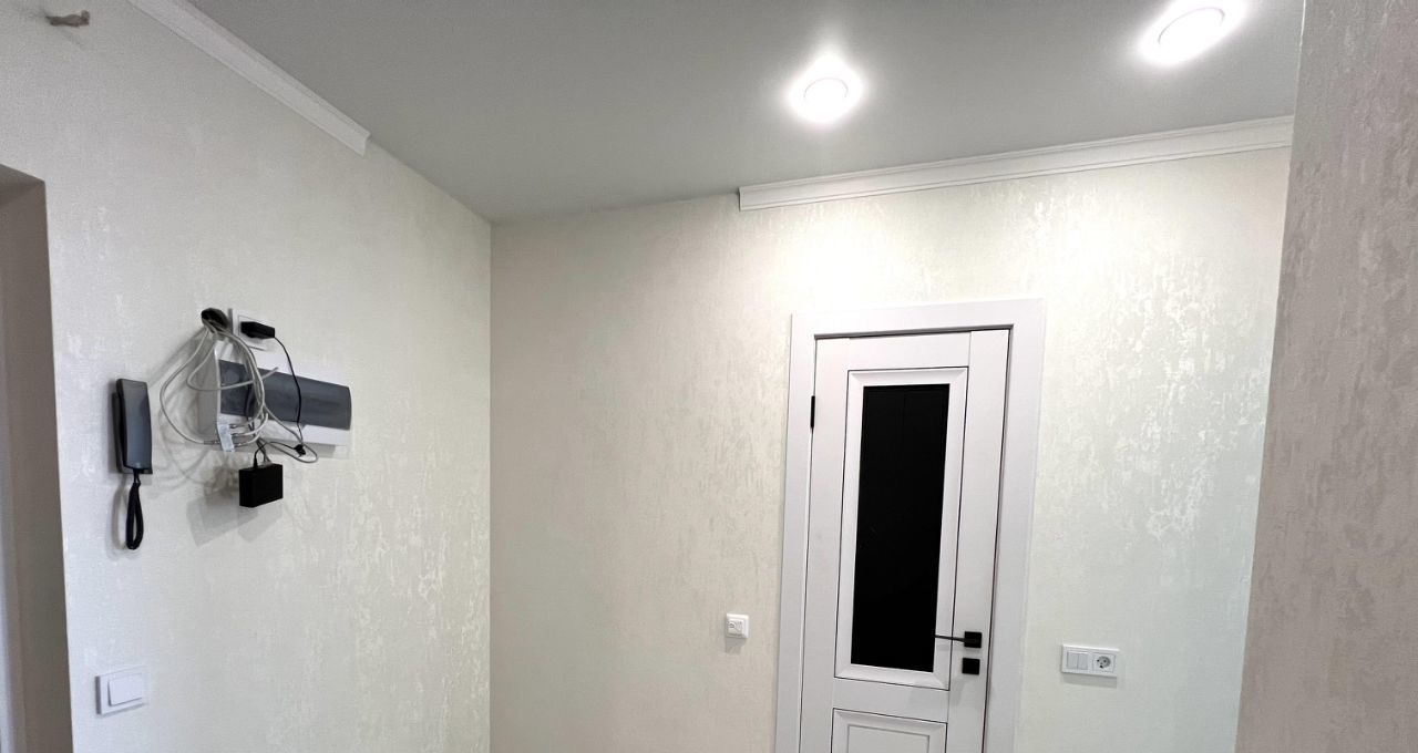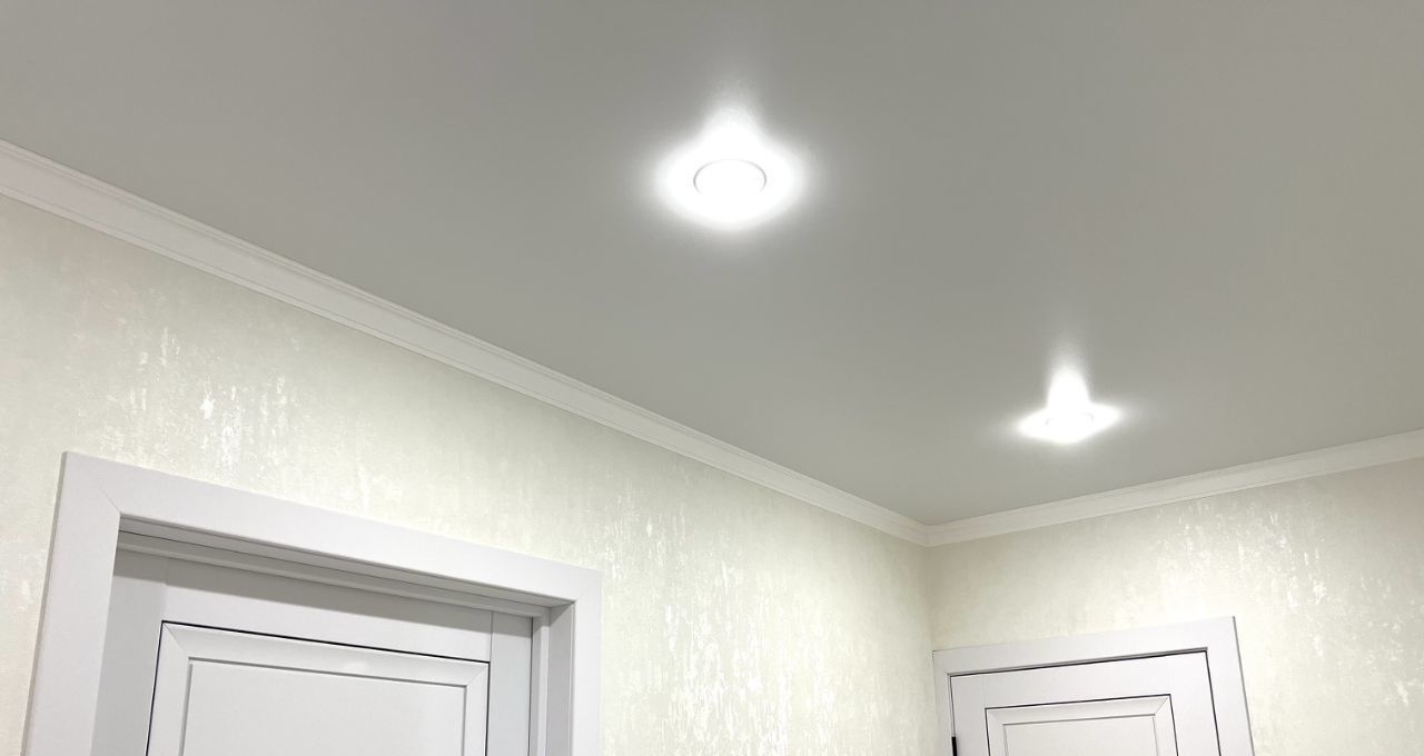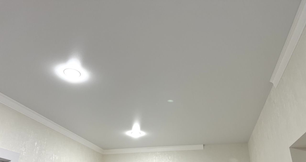 Натяжные потолки с точечными светильниками во всей квартире.