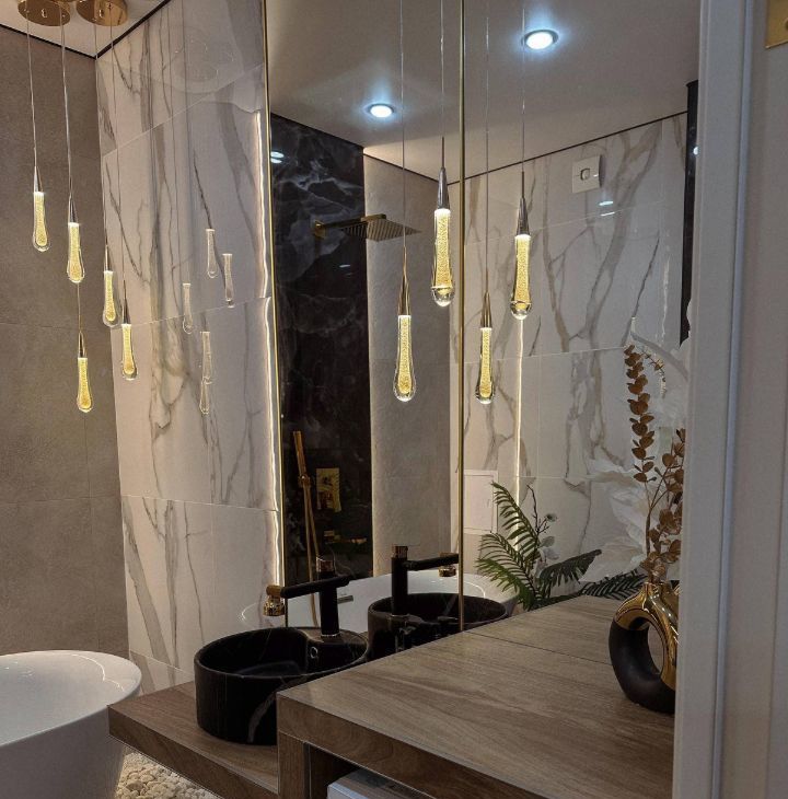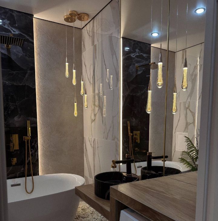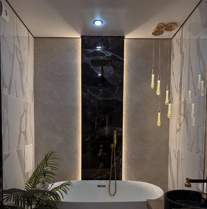 В квартире свежий дизайнерский ремонт: тёплые оттенки, мягкий свет, приятные фактуры. Ванная комната выглядит словно мини-спа: свободностоящая ванна, подсветка, натуральные оттенки здесь особенно приятно расслабиться после насыщенного дня.