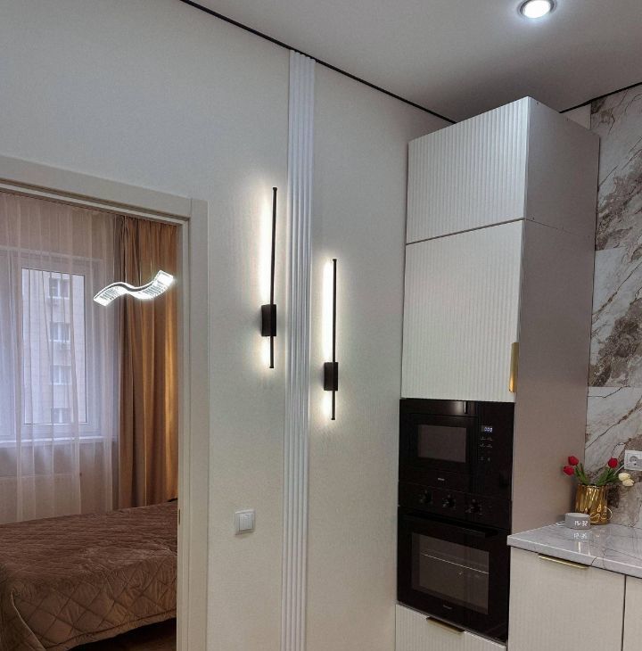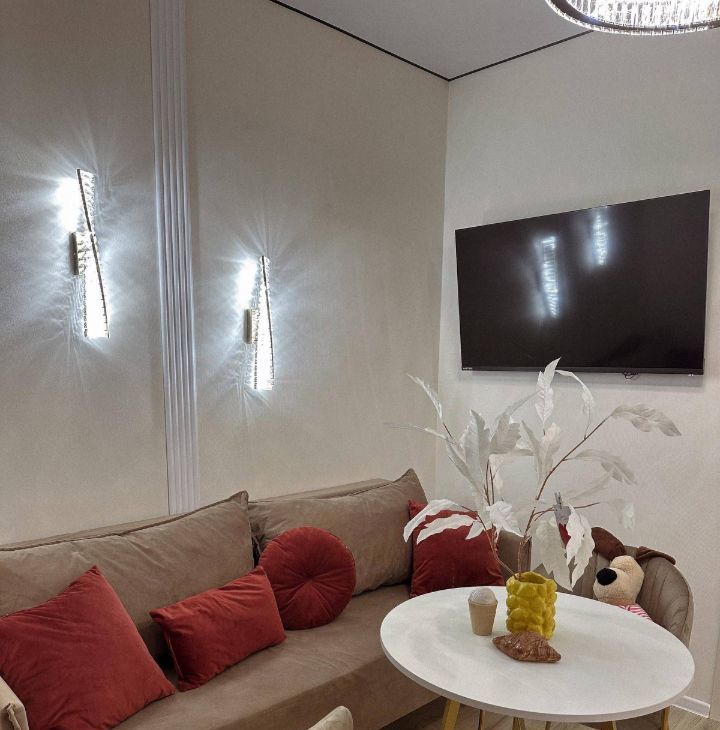 Гостиная наполнена уютом: мягкий диван, стильный декор, свет, который создаёт атмосферу. Здесь легко почувствовать себя дома с первой минуты.