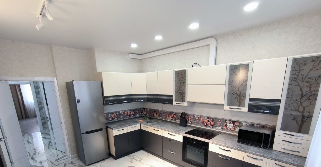 Расположена на 6 этаже 20-ти этажного дома. В наличии вся мебель для проживания есть, вся бытовая техника: сплит-системы в комнатах, ЖК телевизор( на фото не попал)., холодильник, стиральная машина-автомат, СВЧ, ПОСУДОМОЕЧНАЯ машина. Интернет, договор на себя.