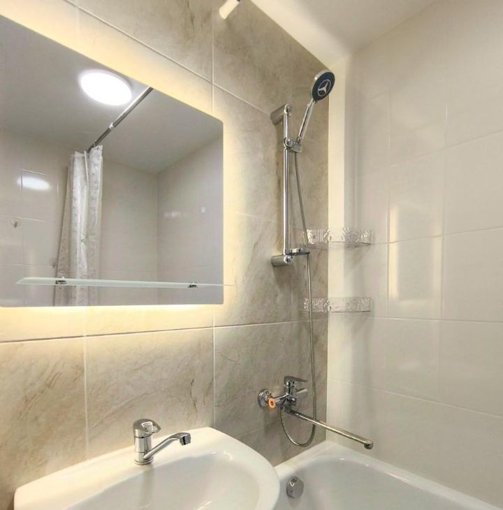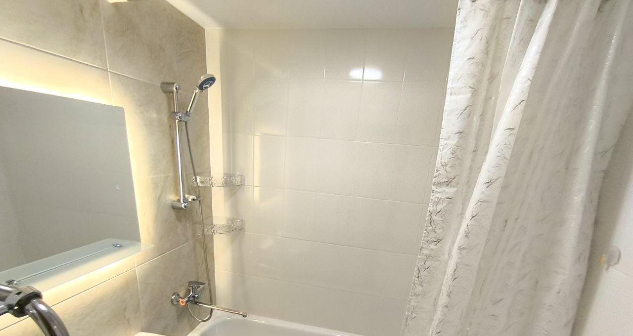 В квартире выполнен свежий косметический ремонт, она полностью готова для комфортного проживания. В комнатах и на кухне есть необходимая мебель. Для вашего удобства установлены кондиционер, холодильник, телевизор и стиральная машина. Санузел раздельный, ванная комната оборудована ванной.