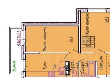 2-к кв. Краснодарский край, Краснодар ул. Генерала Петрова, 27 (53.0 м²)