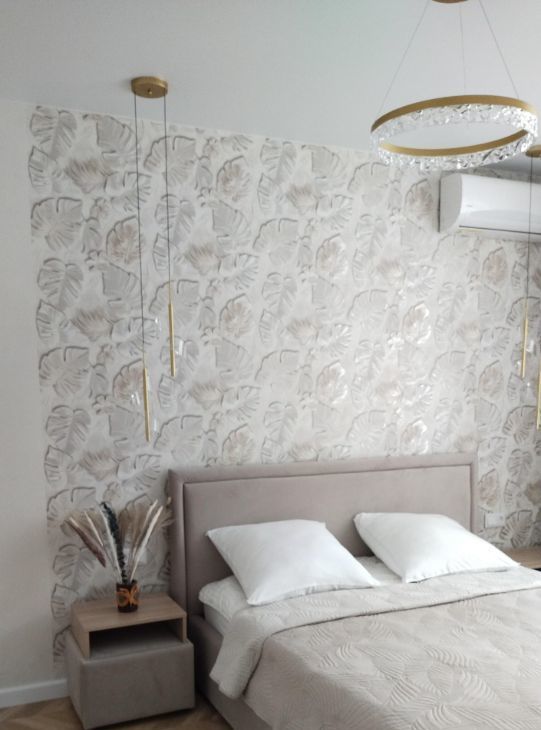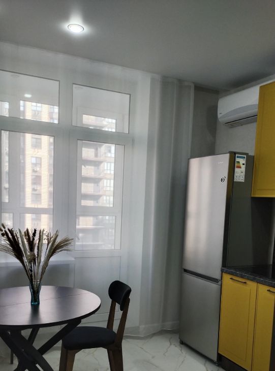 Квартира выполнена с евроремонтом, поэтому все помещения отличаются современным дизайном и качественными материалами. В квартире есть вся необходимая мебель — на кухне и в комнате. Для вашего комфорта установлены кондиционер, холодильник, телевизор и стиральная машина. Санузел совмещенный и оборудован ванной. Два балкона позволяют наслаждаться свежим воздухом и видами на город.