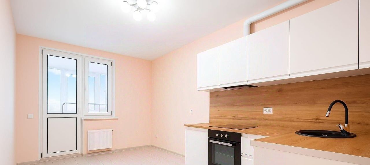 На полу керамогранитная плитка,, стены обои, имеется встроенная новая кухня, установлена вытяжка, варочная панель, духовой шкаф, мойка, все подключено и работает.