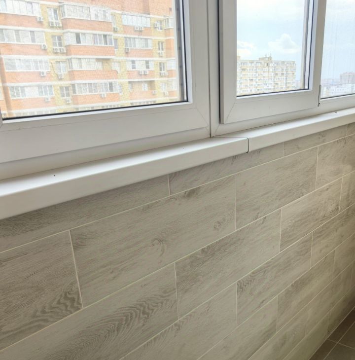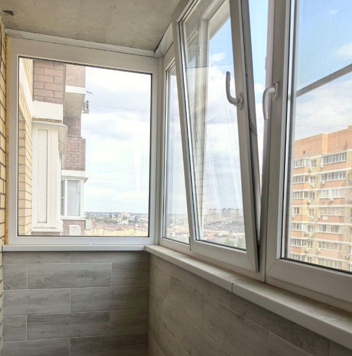 Застеклен качественным стеклопакетом и профилем, плитка на полу и на стене балкона, свет не проведен, потолок не отделан.