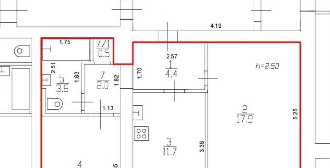 2-к кв. Краснодарский край, Краснодар ул. Имени 40-летия Победы, 37/1 (50.9 м²)